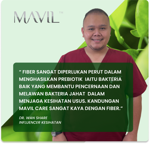 “Wanita perlu bermula dengan kesihatan yang baik! Dalam Mingguan Wanita, Mavil Care menginspirasikan wanita untuk menjaga kesihatan usus, kerana tubuh yang sihat memberi tenaga untuk mengurus keluarga, kerjaya, dan kehidupan dengan lebih yakin.”